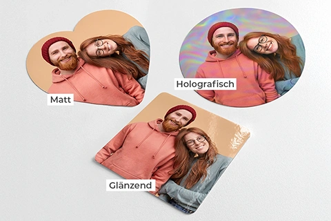 Deine Fotosticker sind im praktischen 5er- oder 10er-Set erhältlich – gedruckt auf hochwertiger Stickerfolie in matt, glänzend oder holografisch, ganz nach deinem Geschmack. Für leuchtende Farben und eine erstklassige Bildqualität ist gesorgt. Du kannst entweder ein Motiv mehrfach verwenden oder jeden Sticker ganz individuell gestalten. So entstehen persönliche Hingucker, die sich ideal zum Basteln, Verschenken oder Dekorieren eignen.