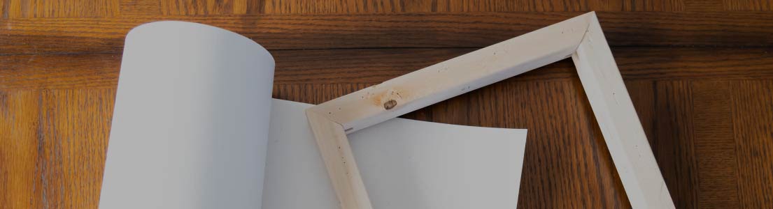 Eine gerollte Leinwand mit Keilrahmen einrahmen