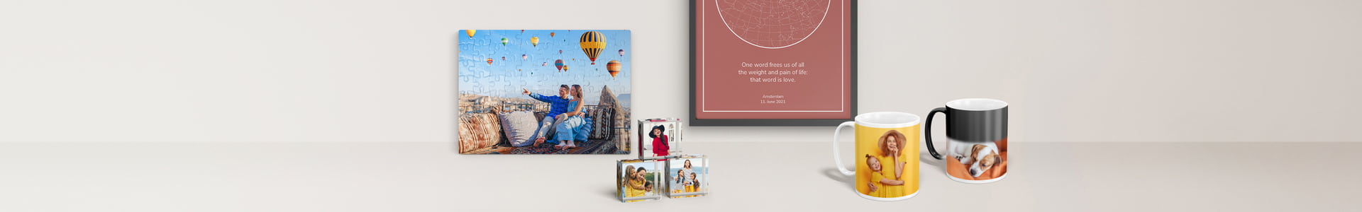 Mit Produkten wie beispielsweise Fototassen, Fotopuzzle und Foto-Mousepads bieten wir dir zahlreiche Möglichkeiten, deine Kreativität zu entfalten. Gestalte dein Fotopuzzle oder deine Tasse – ganz persönlich und individuell. Unsere Fotoblöcke in fünf verschiedenen Variationen, Foto-Magnete und Fotoaufsteller ergänzen das Sortiment und sind für jeden möglichen Anlass als passendes Geschenk geeignet. Auch für die Weihnachtszeit haben wir für dich eine einzigartige Produktpalette aus einer personalisierbaren Weihnachtskugel und Schneeflocken mit deinem Foto.