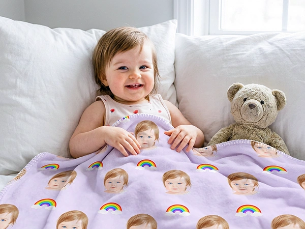 Feiere deinen kleinen Liebling mit einem personalisierten Kindermuster auf Decken, Kissen, Taschen und mehr!